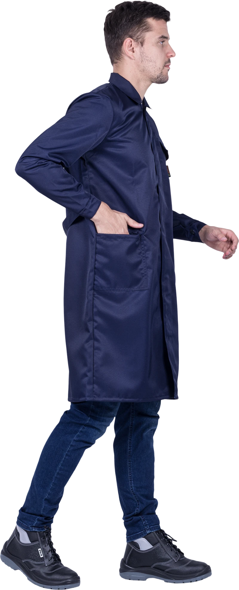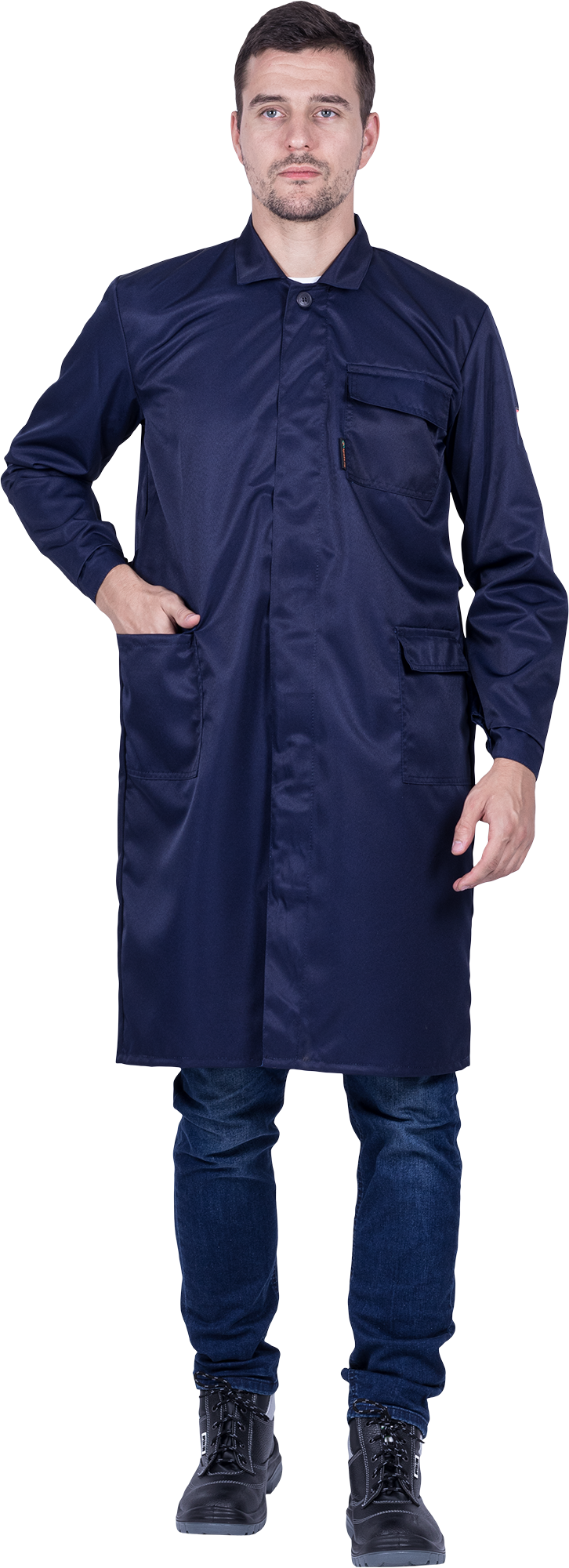Халат мужской от растворов кислот и щелочей, механических воздействий, темно-синий