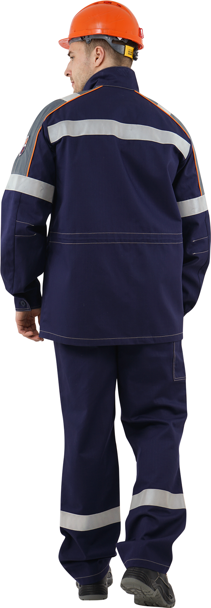 В костюме используется огнестойкая световозвращающая полоса шириной 50 мм. Огнестойкие нитки Nomex.