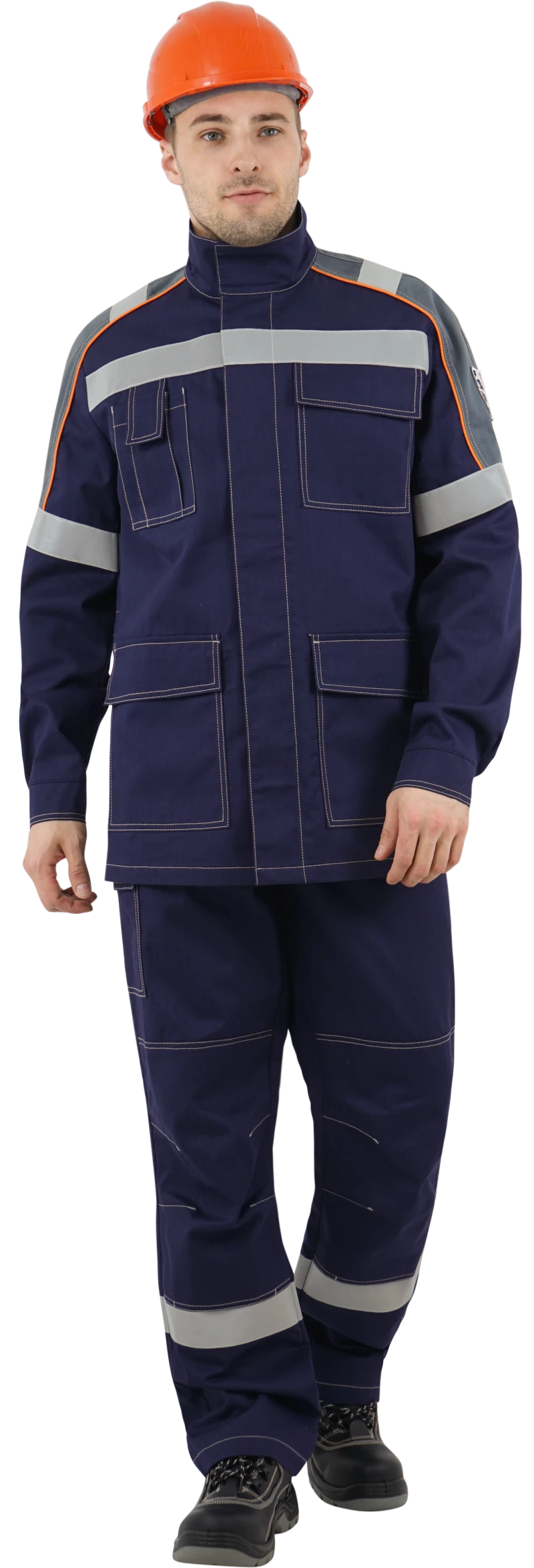 Костюм мужской МЕГАСТАТОЙЛ от нефтепродуктов, кратковременного воздействия пламени, статического электричества, темно-синий/серый/оранж