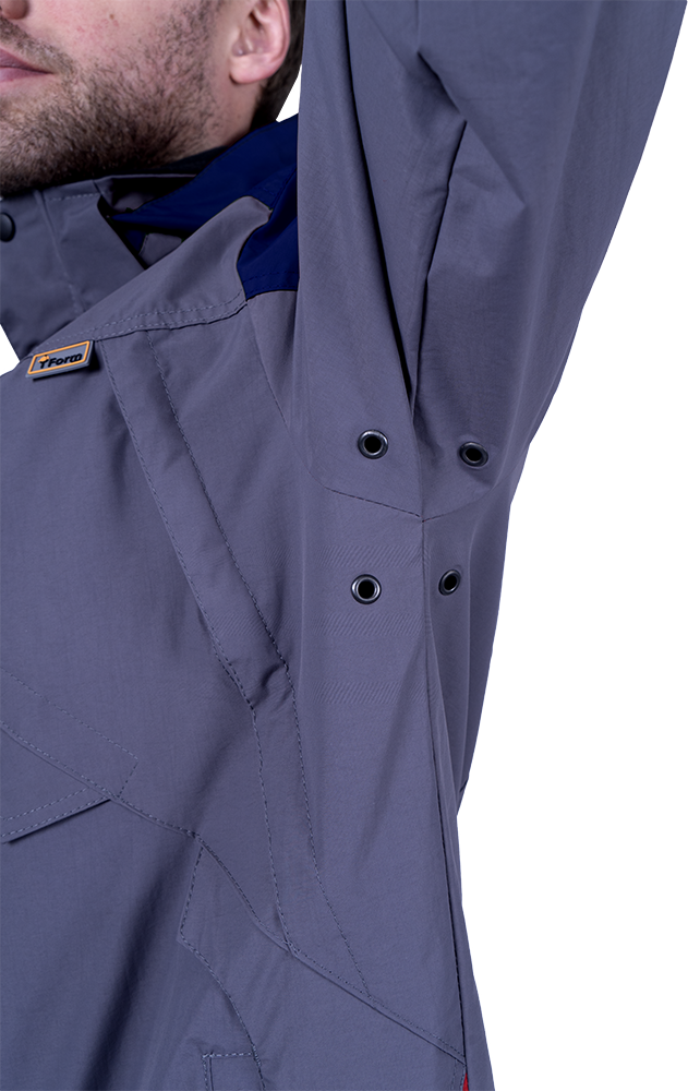 Состав: 100% полиамид+PU мембрана, отделка WR, пл. 125 г/м², водонепроницаемость 5 000 мм вод.ст., паропроницаемость 15 000 мг/см²*24ч