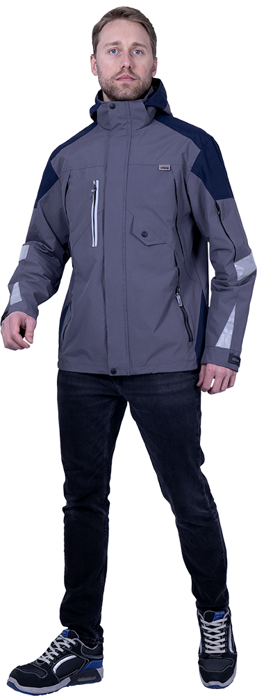 Куртка-штормовка РЕСПЕКТ, серый-т/синий