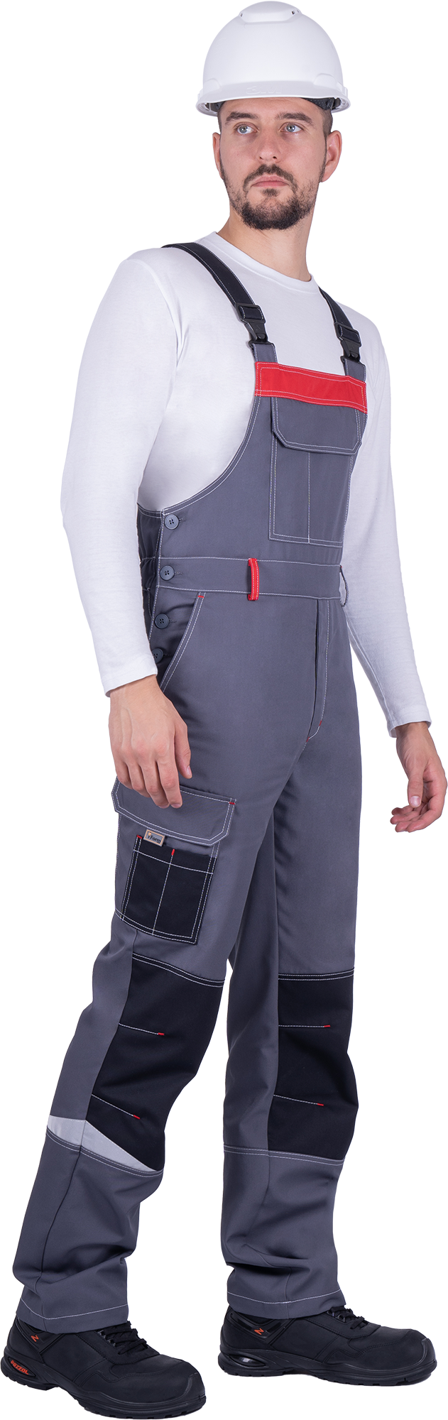 Полукомбинезон мужской ТУРБО SAFETY от механических воздействий и ОПЗ, серый/красный/чёрный