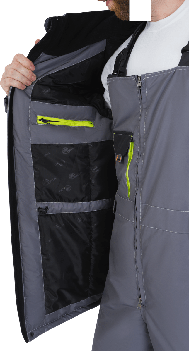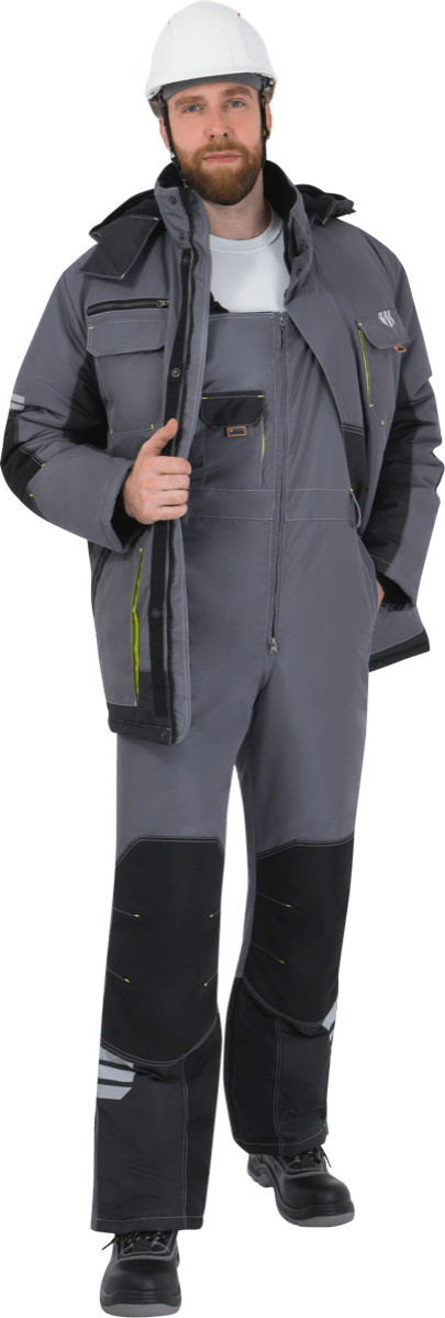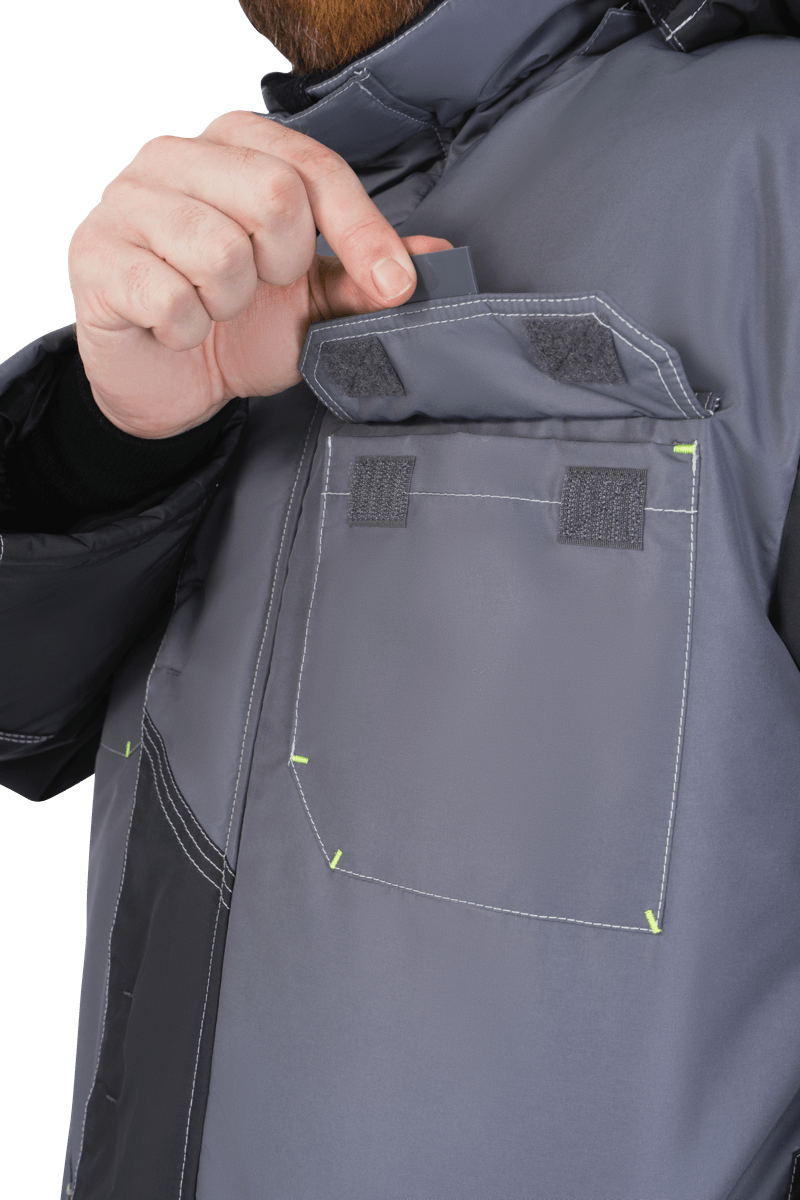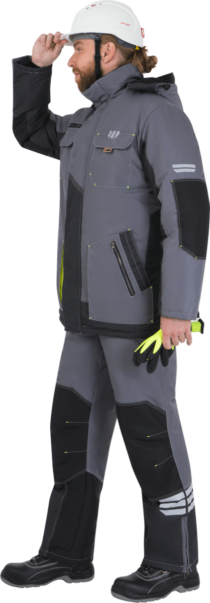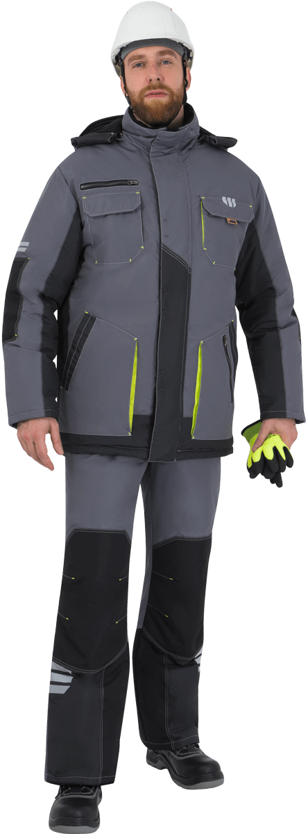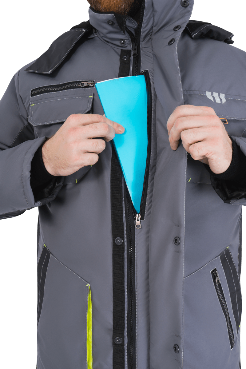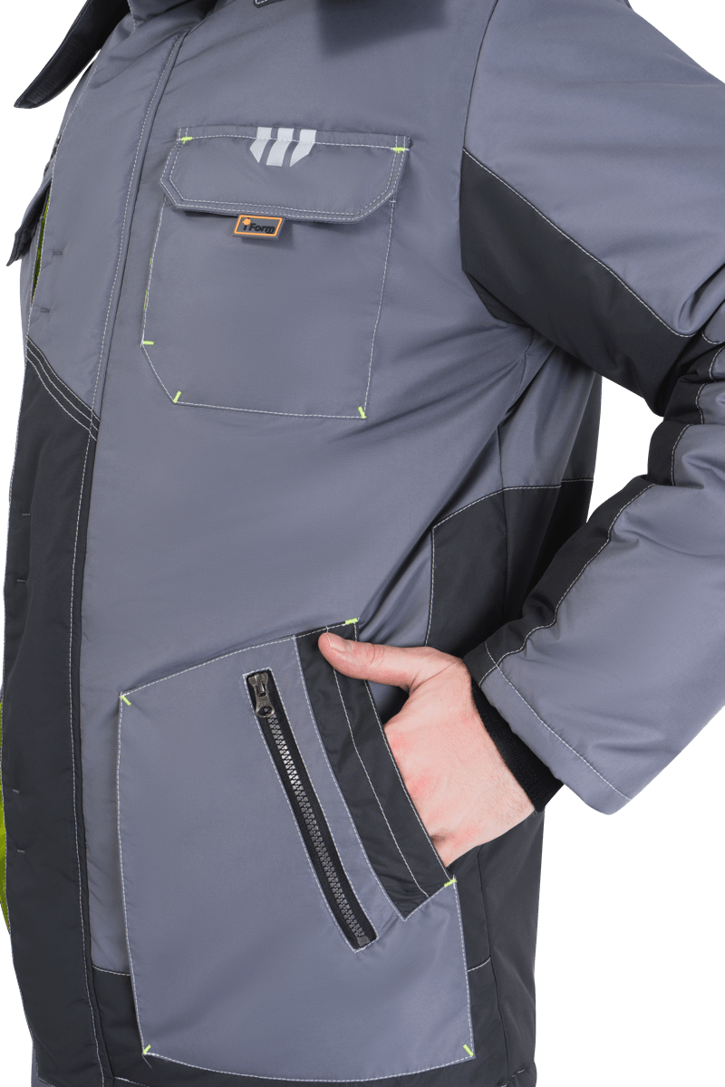 Куртка мужская ЭДВАНС от пониженных температур воздуха и ветра, механических воздействий и ОПЗ, серый/темно-серый/лимонная отделка