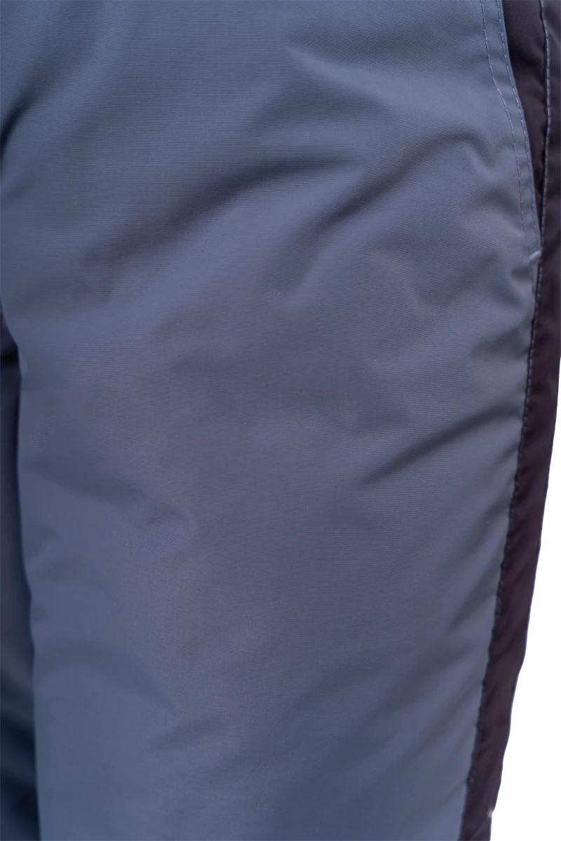 • высокий утеплённый пояс с застёжкой на две пуговицы. Объем пояса регулируется в области боковых швов с помощью хлястиков с застежкой текстильной и держателя с двухщелевой пряжкой