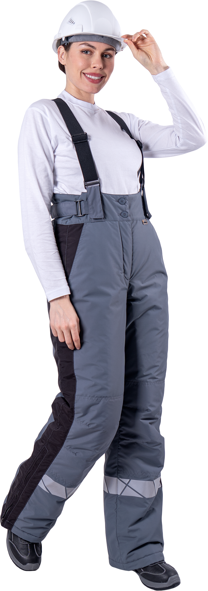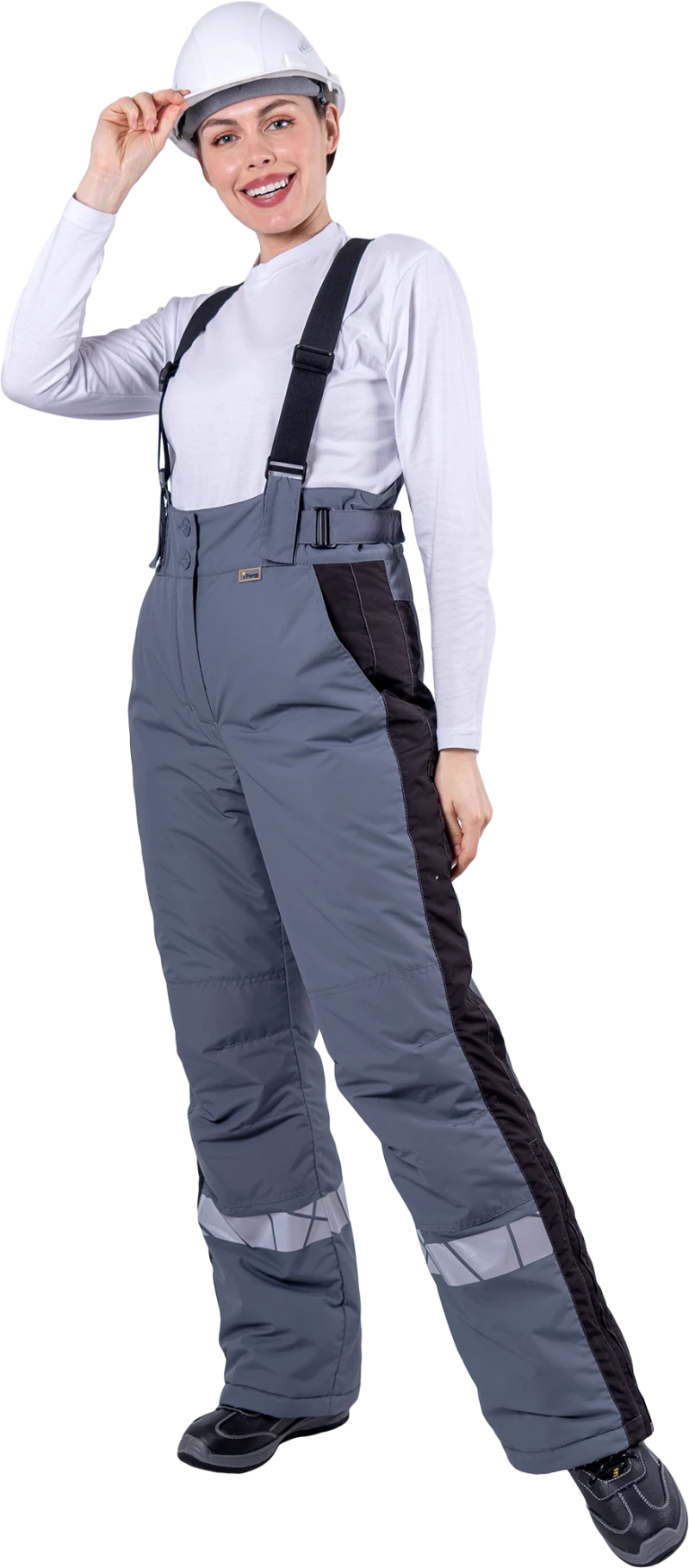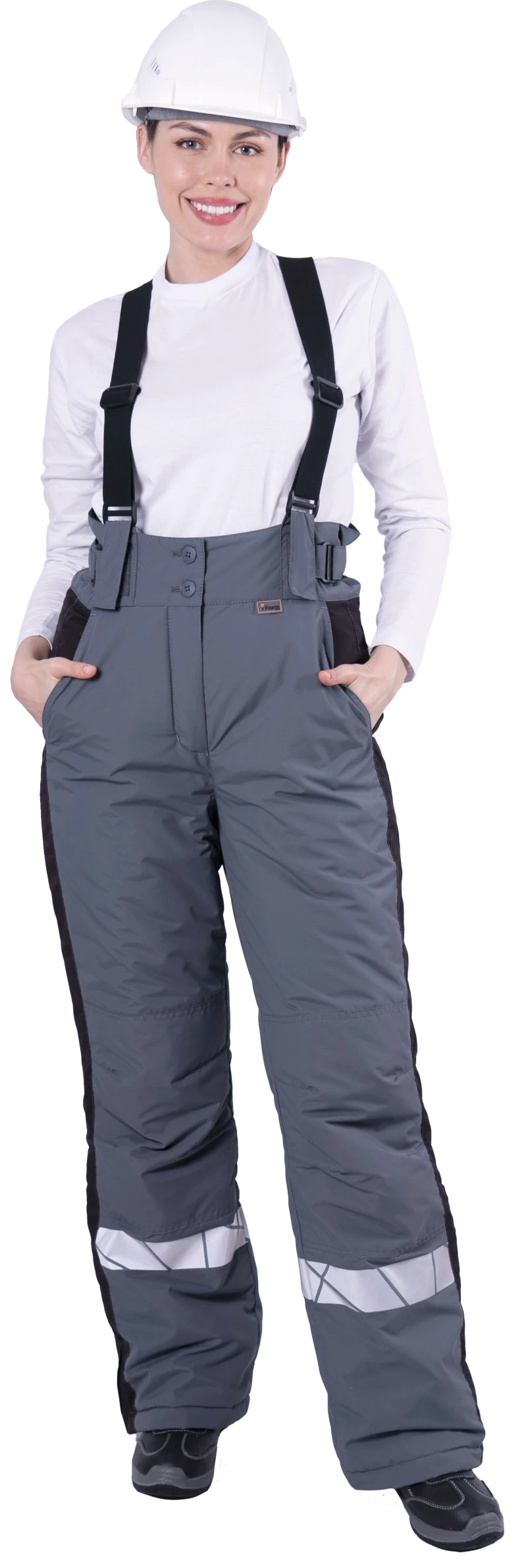 Брюки женские ХАЙ-ТЕК SAFETY от пониженных температур воздуха и ветра, механических воздействий и ОПЗ, серый/черный