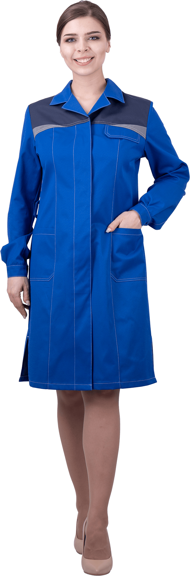 Покупайте Халат женский КМ-10 ЛЮКС от механических воздействий и ОПЗ, василёк/темно-синий по цене 2235 руб. оптом или в розницу в магазине спецодежды СнабТим. Большой выбор защитной одежды, СИЗ и других хозтоваров в Чистополе. Заказывайте онлайн или по телефону +7 (991) 190-59-22