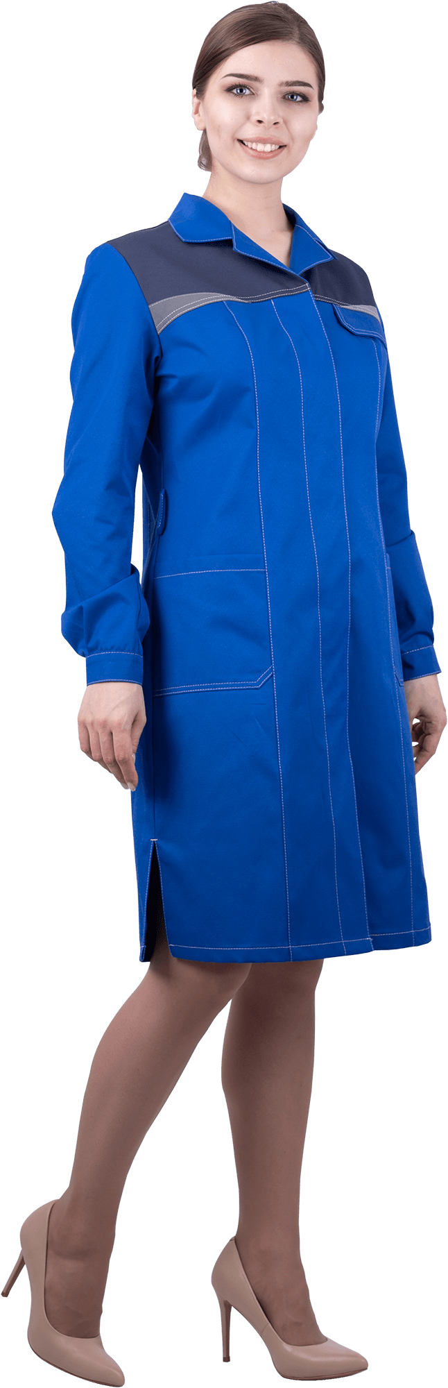 Халат женский КМ-10 ЛЮКС от механических воздействий и ОПЗ, василёк/темно-синий