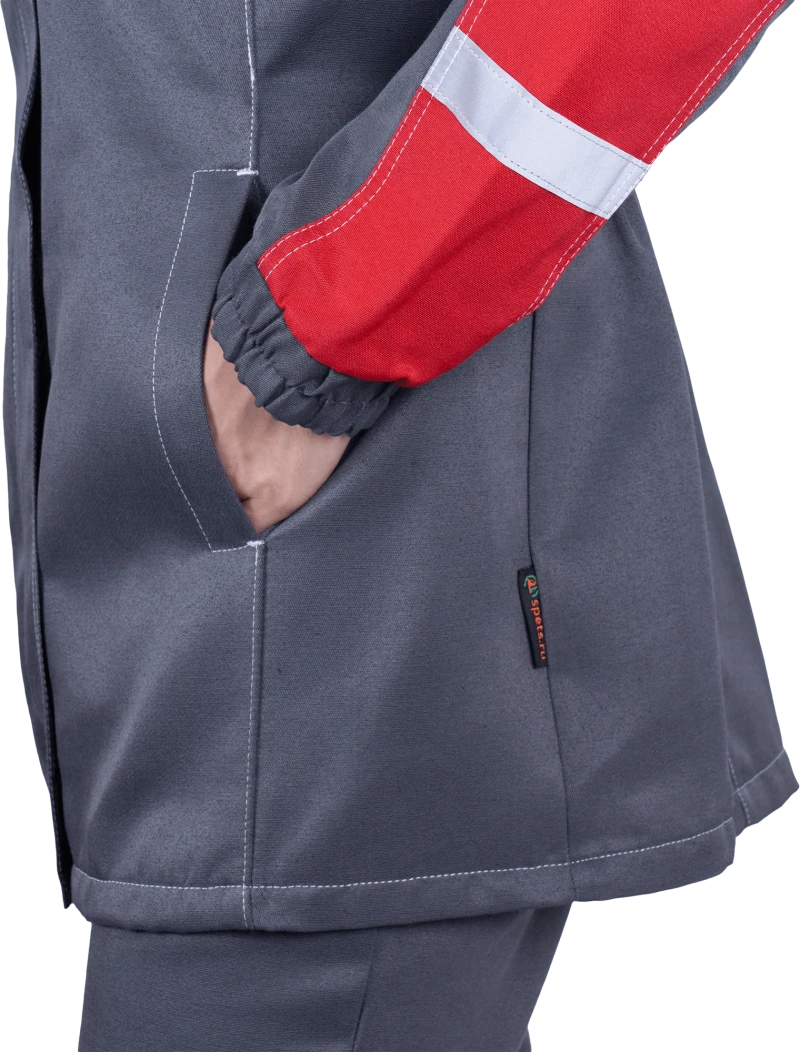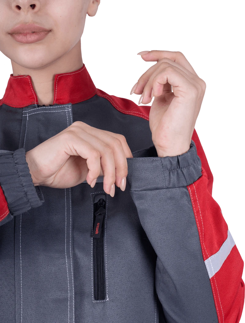Костюм РОУД летний, серый-красный, женский (Куртка+брюки)