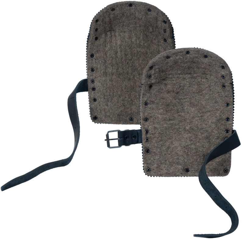 Кожаные наколенники изготовлены из прочной шорно-седельной кожи с учетом возможных тепловых воздействий, они соответствуют требования безопасности по огнестойкости, устойчивости к прожиганию и воздействию брызг горячего металла. Толщина материала – 3 мм, а в качестве подкладки использован слой войлока толщиной 10 мм. Наколенники имеют высокую прочность и долговечность в условиях постоянного истирания.