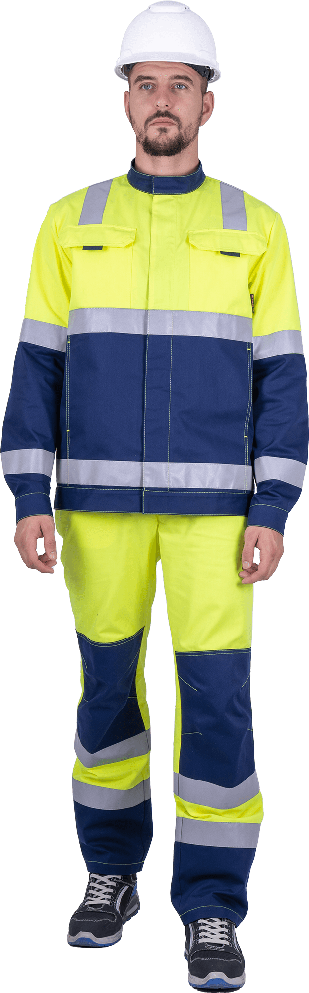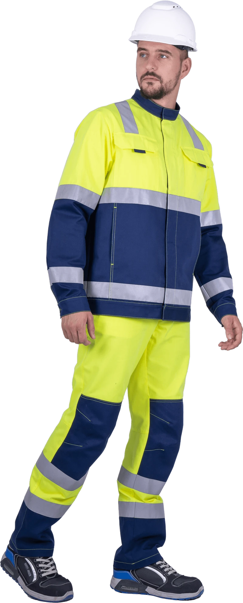 Костюм мужской РЕФЛЕКТ-1 сигнальный, от механических воздействий и ОПЗ (куртка, полукомбинезон), флуоресцентный желтый/синий