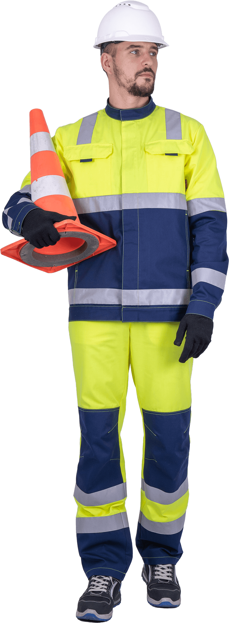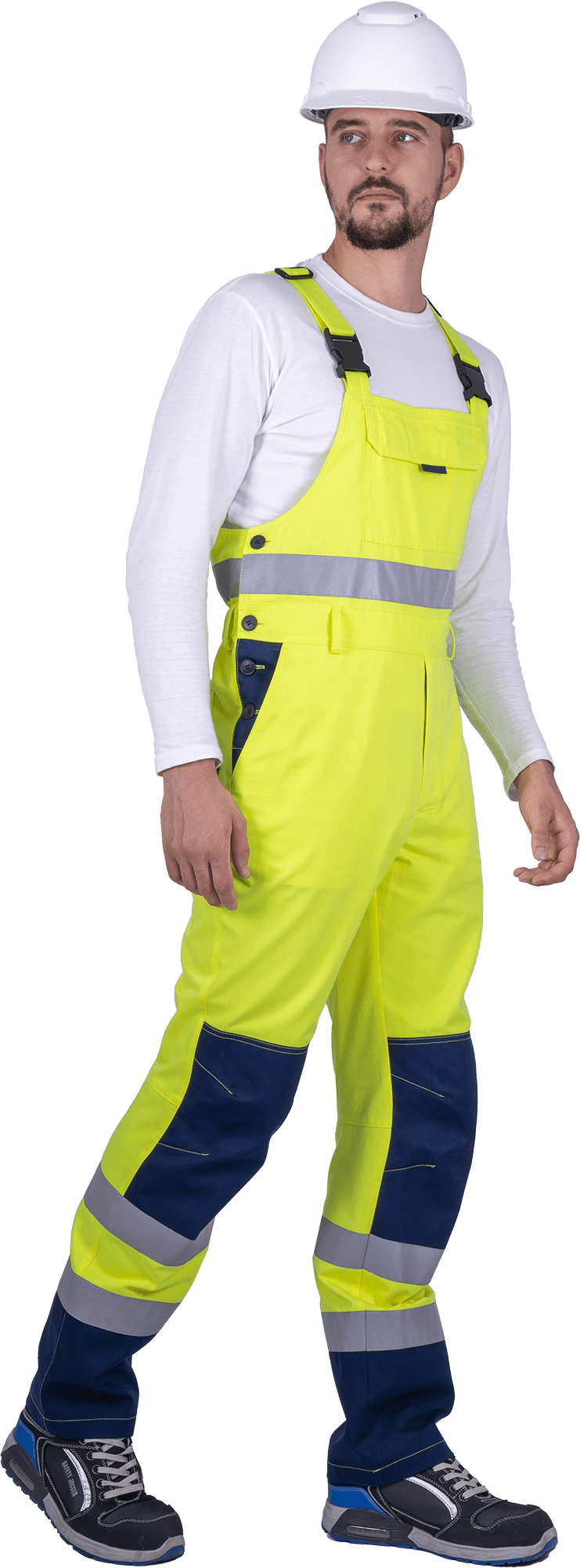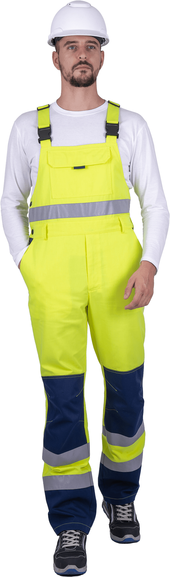 Men' s high visibility work suit REFLECT-1 against mechanical unfluences and GPP (jacket, bib overeal