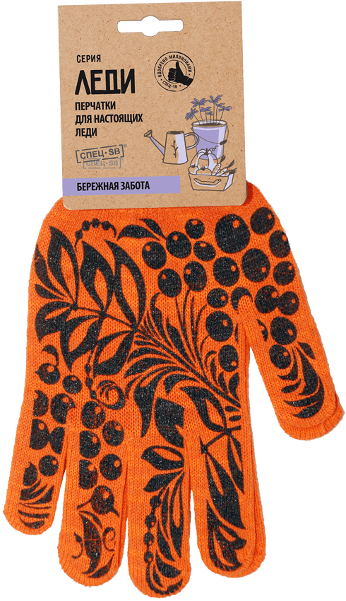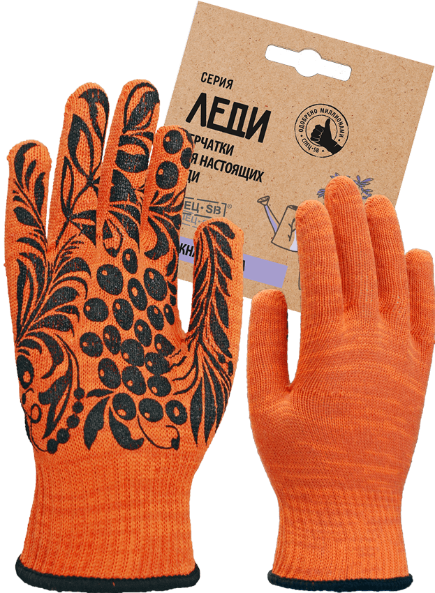 Перчатки трикотажные с ПВХ Рябина-10 оранжевый, (Пер 059Я) картонный ярлык